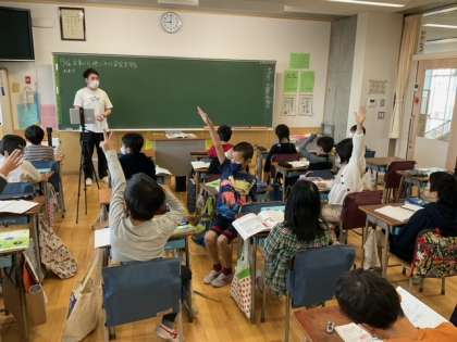 社会科の時間です。「火事から地域の安全を守る」これから学校の周りの消防施設について学習していきます。