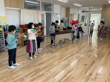 だるまさんがころんだ、イントロクイズで楽しんだあと、茶色のこびんの合奏をプレゼントしました。とても楽しい時間でしたね。