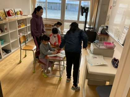 グループごとに、朝の会を進めています。落ち着いて1日がスタートしています。
