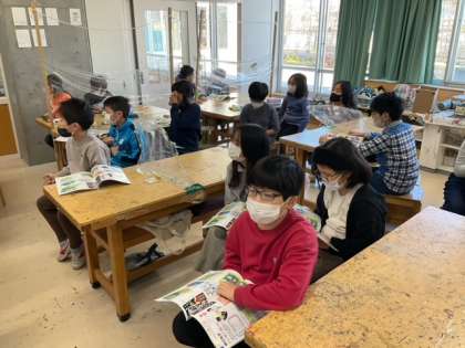 図工の時間です。「飛び出す ハッピーカード」もらってうれしくなるような、開けてびっくり飛び出すカードを作ります。