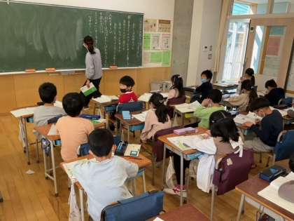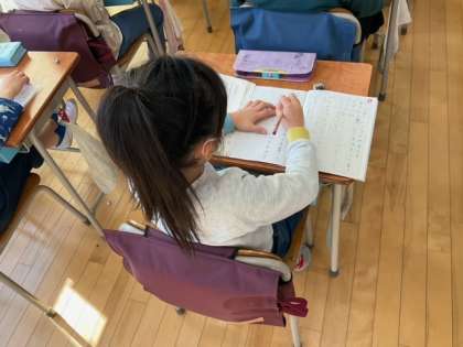 国語の時間です。「わたしはおねえさん」を読んで、自分ならどうするか、自分にも同じようなことがあったかを考えながら、感想を書いていきます。