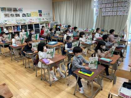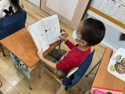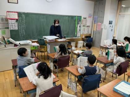 国語の時間です。「日づけと ようび」元気いっぱいに音読をしています。声に出して文を読むことは大事な活動です。