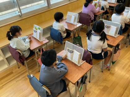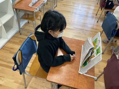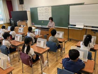 音楽の時間です。みんなで声を合わせて、クリスマスソングを歌っています。もうすぐクリスマスですね。