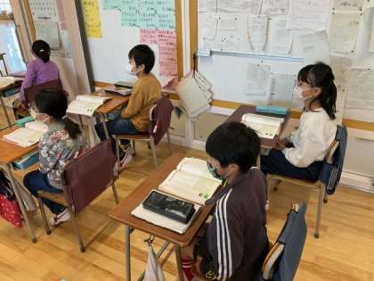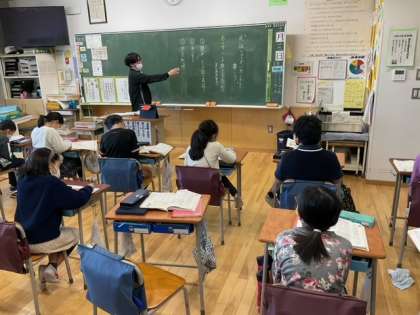 国語の時間です。組み立てを工夫しながら、「民話しょうかいカード」を書いていきます。