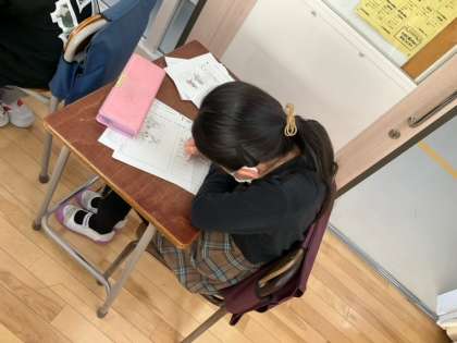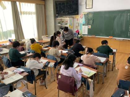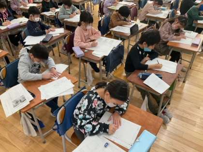 国語の時間です。「お話のさくしゃになろう」はじめ、なか、おわりを意識して、オリジナルのお話を書き進めています。