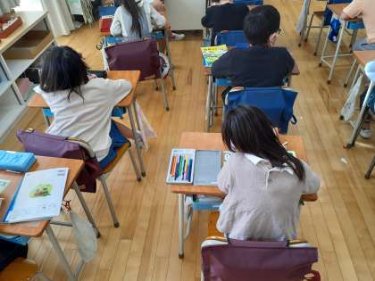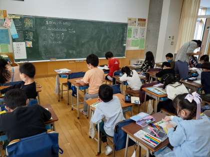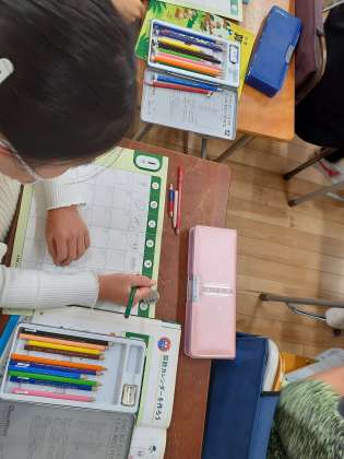 算数の時間です。算数カレンダーを作りました。身の回りにある1から31までのものを一生懸命考えていました。