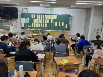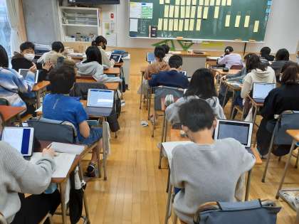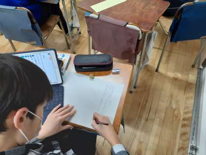 国語の時間です。楽しみな冬休みの俳句をつくりました。卒業文集もよく考えて書いています。