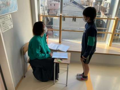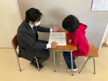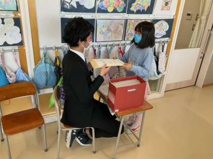 一人一人に通知表が手渡されています。どきどきかな、わくわくかな。みんな、よくがんばりました!
