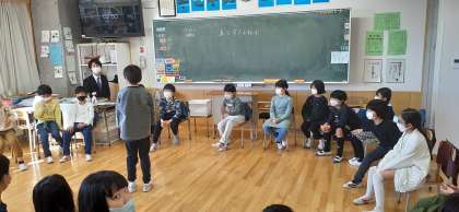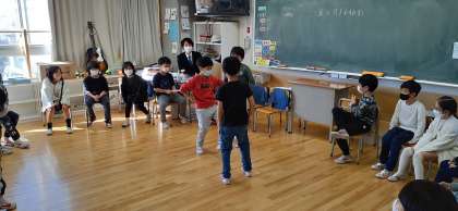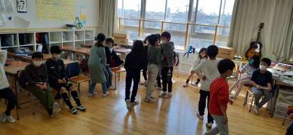 学活の時間です。フルーツバスケットをして、友達と仲良く過ごしました。楽しい3学期が始まりそうです。