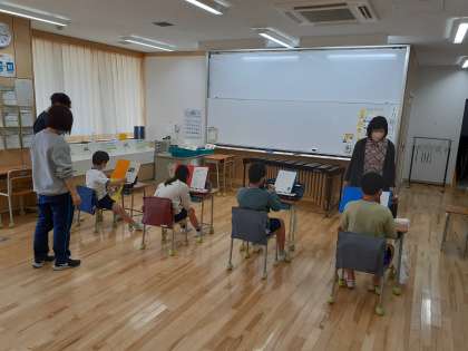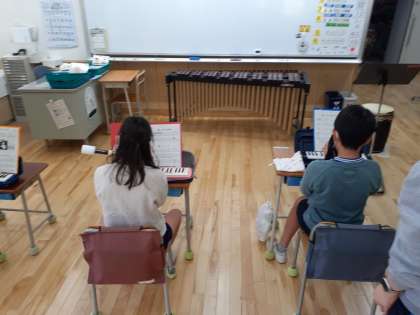 音楽の時間です。リコーダーの練習をしました。高い音や低い音を出すのは難しいですが頑張りました。