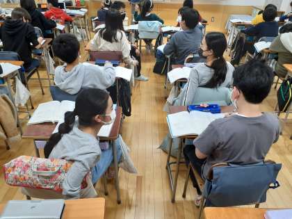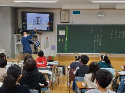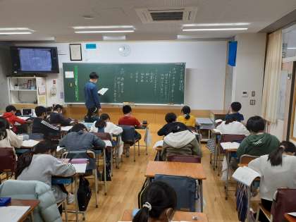 国語の時間です。生活の中でできた詩について考えました。言葉について、友達と話し合うことで、いろいろな想像ができました。