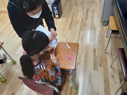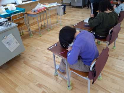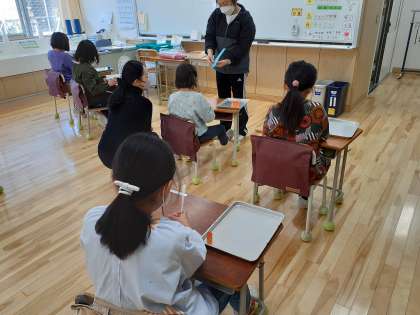 図工の時間です。お弁当の中身を考えて工作しました。美味しいお弁当ができあがりそうです。