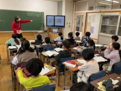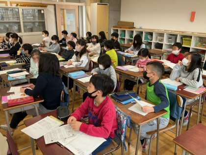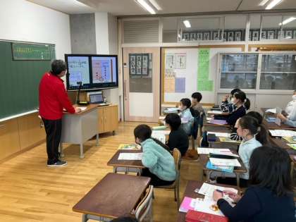 算数の時間です。算数教室で、小数のしくみについて学習しています。