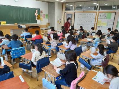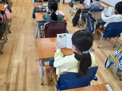 音楽の時間です。みんながよく知ってる歌をたくさん聞いて歌いました。
