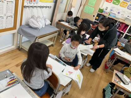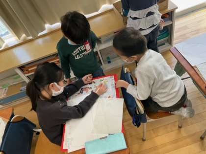 図工の時間です。「できたら いいな こんなこと」夢のたし算を考えて、絵を描きます。どんな絵になるのかな?