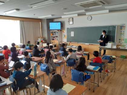ipadの使い方について増子先生からお話がありました。ルールを守って使用できるよう今後も指導していきます。