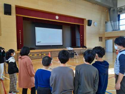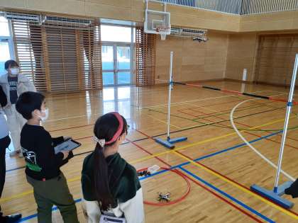 総合の時間です。プログラミングとリモコンの両方でドローンを操縦しました。初めての体験にみんな楽しそうです。