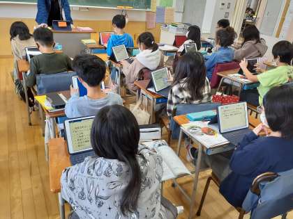 社会の時間です。今週の木曜日は社会科見学です。浅草の町について、見学を通して知りたいことを考えました。