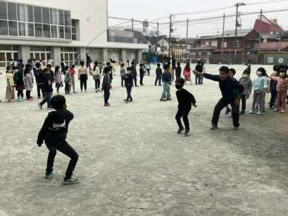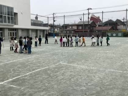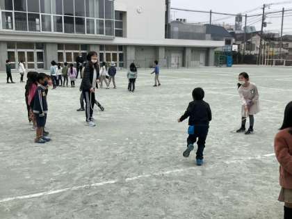 長なわとびにチャレンジしています。タイミングが難しいけれど、がんばれ!