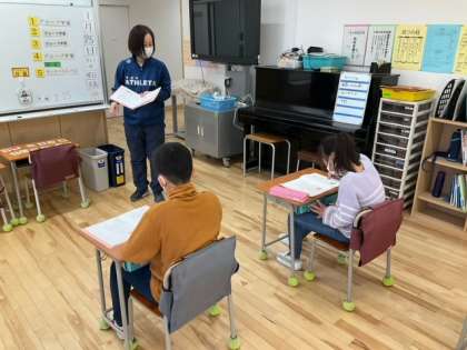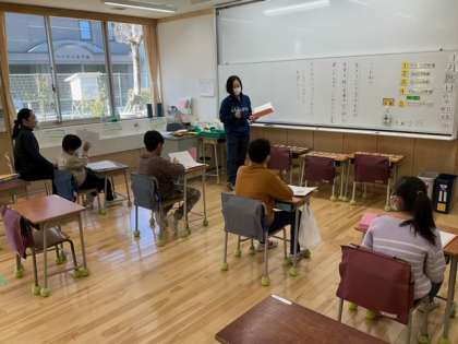 グループ学習の時間です。ことわざの学習をしています。「生きていく上での知恵や苦労を表した言葉を学んでいます。