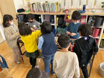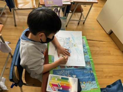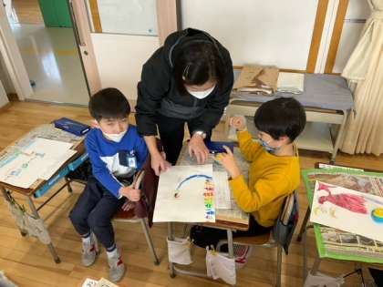 図工の時間です。「できたらいいな こんなこと」の仕上げに入っています。できたらいいことの説明も書いています。
