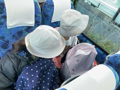 バスに乗車しました。子どもたちは、とても楽しそうです。しっかり学習してきましょう!