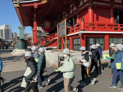 浅草に到着しました。良い天気です。これからグループごとに浅草を巡ります。
