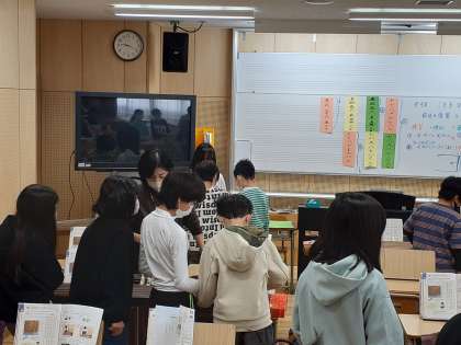 音楽の時間です。琴の練習は二回目です。さくらさくらの音色がきれいに聞こえてくるようになりました。