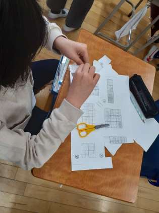 算数の時間です。サイコロの形を作っています。面の大きさを考えて作りました。