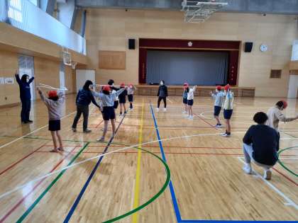 体育の時間です。縄跳びを使った運動をしました。体の動かし方を学ぶことでできる動きが増えました。