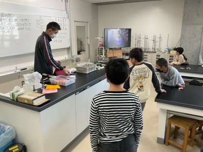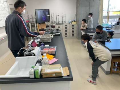 理科の時間です。「金ぞくの温まり方」実験でアルコールランプを使います。上手にマッチをすれるでしょうか?