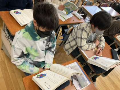 国語の時間です。「人を引きつける表現」書いている内容は同じでも、表現を工夫することで伝わり方が違ってきますね。