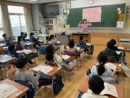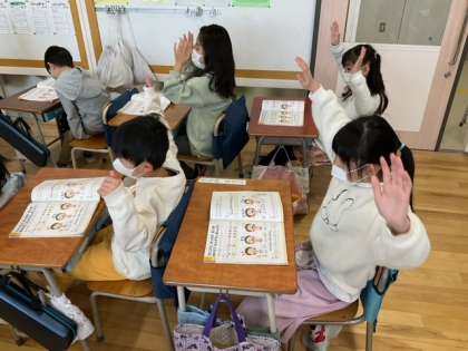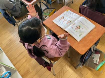 音楽の時間です。「とんくるりん ぱんくるりん」手拍子を打ちながら、歌を歌います。