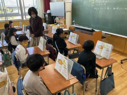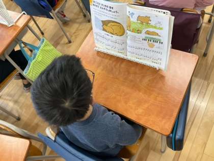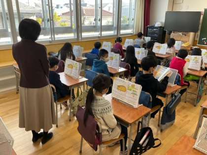 音楽の時間です。「こぐまの二月」このあと、歌声と鍵盤ハーモニカを合わせて、楽しく演奏します。