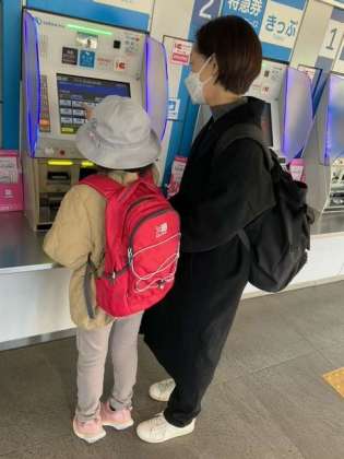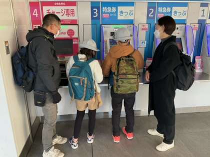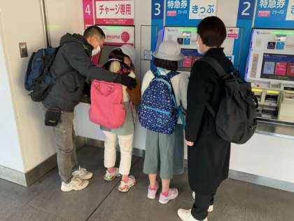 切符の買い方は、事前に練習しましたね。今日は、本物の自動券売機で切符を買いました。