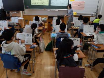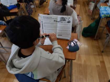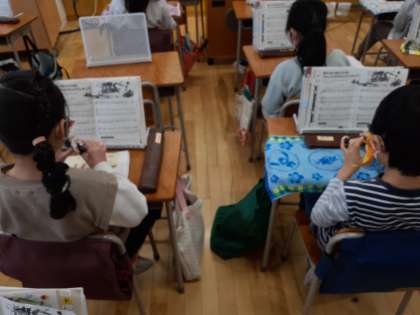 音楽の時間です。リコーダーで「パフ」の練習をしました。ご家庭でも聞いてみてください。頑張っています。