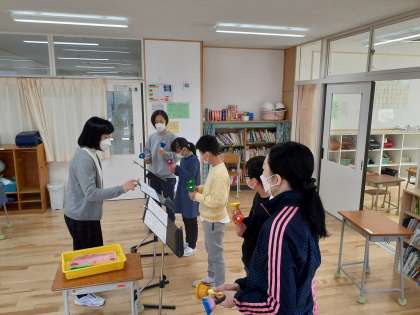 音楽の時間です。トーンチャイムとハンドベルを使って「ビリーブ」を演奏しました。とてもきれいな音を出すことができました。