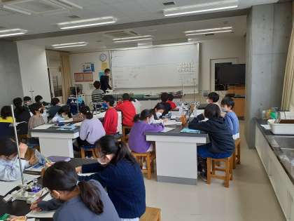 理科の時間です。金属の温まり方について学習しました。予想を考えて、実験で確かめることができました。