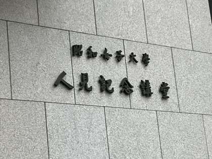 人見記念講堂に到着しました。これ以降は、写真撮影禁止です。では、オーケストラのすてきな演奏を味わってきます。