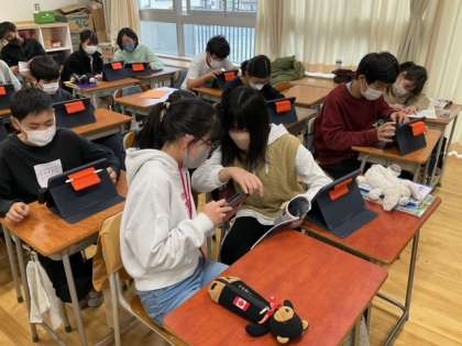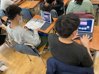 社会科の時間です。各自が調べたい国を選び、テーマに沿って調べていきます。どんなまとめになるのか楽しみです。