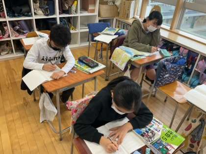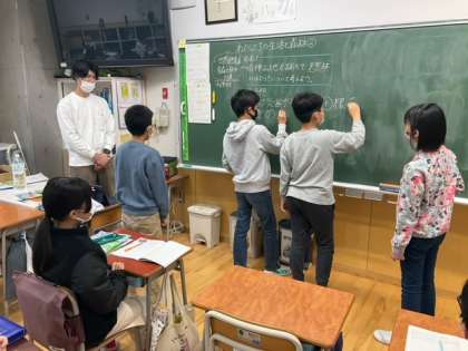 社会科の時間です。「わたしたちの生活と森林」白神山地の天然林のはたらきについて予想しています。