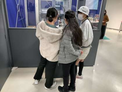 科学技術館の見学が始まりました。ここからはグループで行動します。