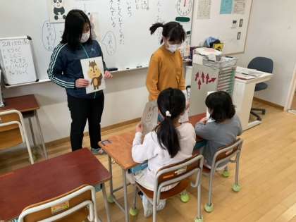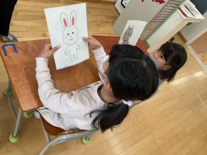 道徳の時間です。「ぞうさんとおともだち」役割演技をしながら、友達の大切さについて考えています。