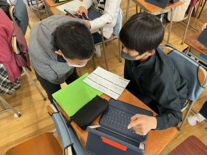 総合的な学習の時間です。「自分の生き方を考えよう」自分に合った職業は何かを考え、各自で職業調べを進めています。