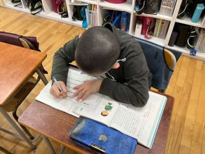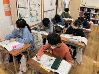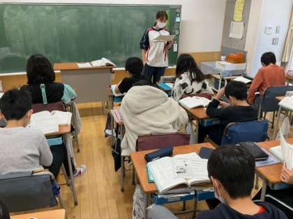 国語の時間です。「方言と共通語」中学生が作成した「方言おみくじ」を題材に、方言に対する理解を深めています。