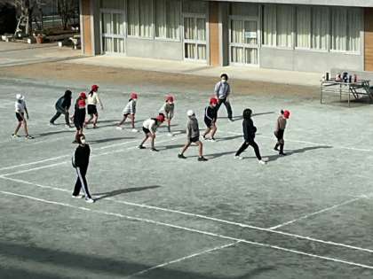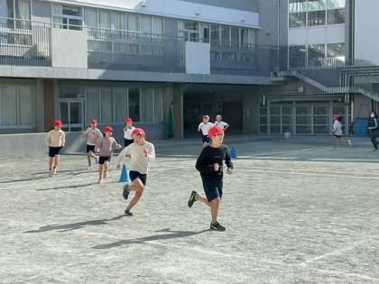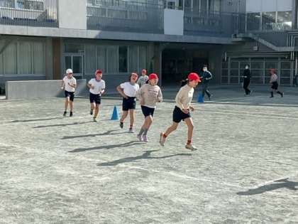 体育の時間です。継続して持久走に取り組んでいます。日に日に記録が向上していますね。