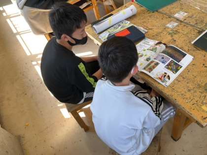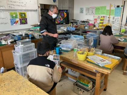 図工の時間です。「ひびき合う 形と色を求めて」スチレンボード版画に挑戦します。美しくひびき合う表現とは、工夫してみてくださいね。