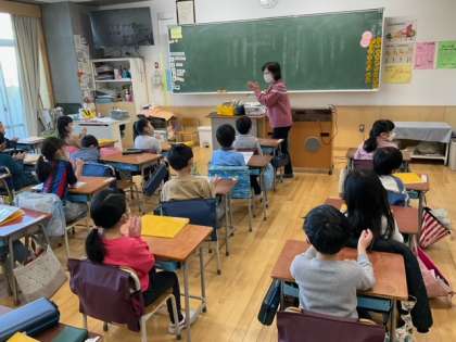 音楽の時間です。「ともだちになろうよ」明日も一緒に遊ぼう、ずっとずっと友達でいようね!