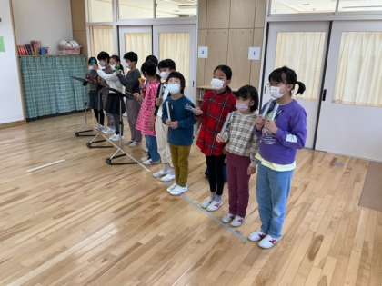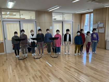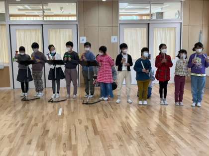 音楽の時間です。6年生を送る会では、トーンチャイムとベルによる「ビリーブ」を演奏します。音の響きがすばらしいです。