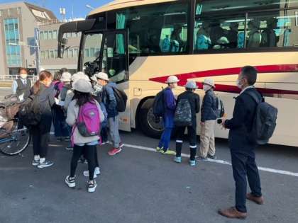 バスに乗って、最初の見学先JFEスチール東日本製鉄所に向かいます。